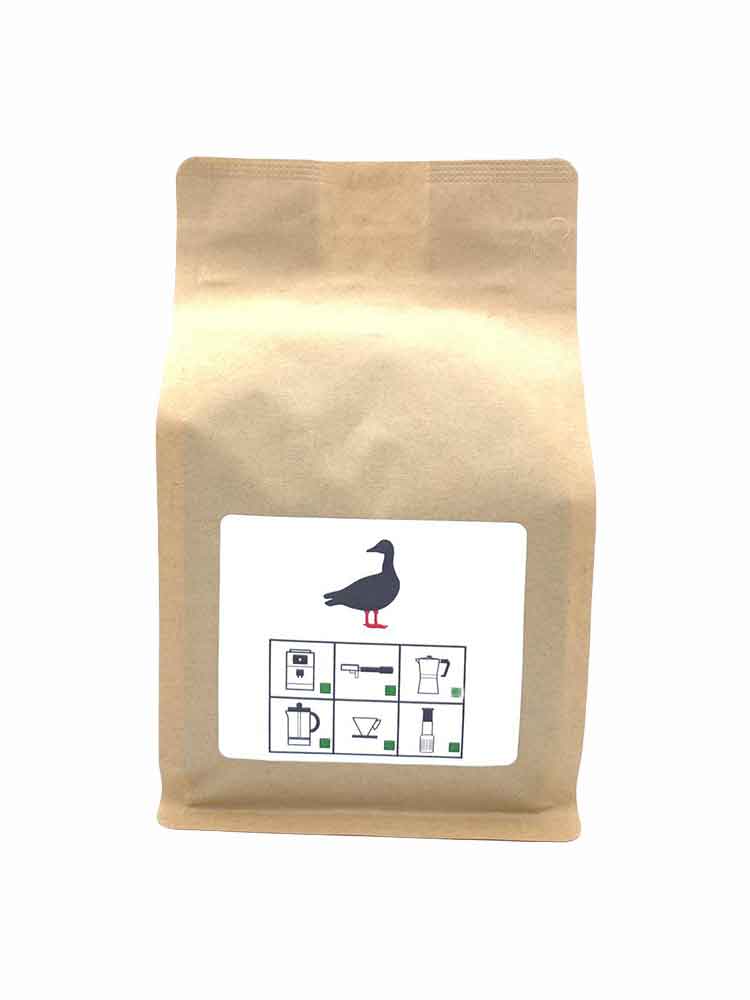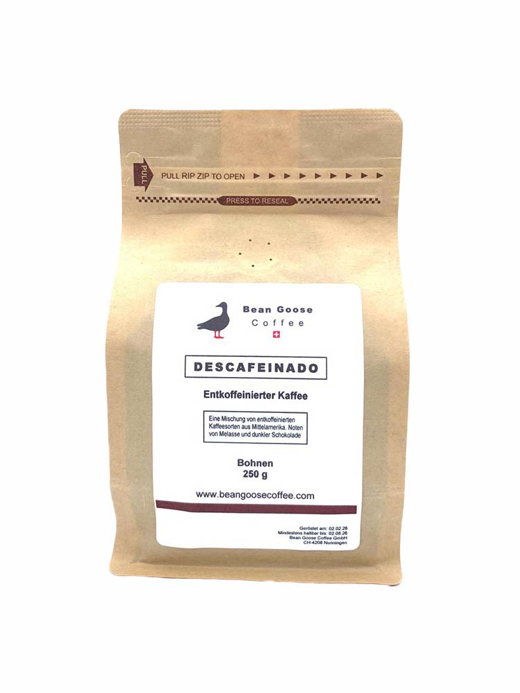 This Arabica blend is decaffeinated using the Carbonic Natural™ process. This gentle extraction method removes only the caffeine, so as to retain the full taste potential of the green coffee without losing any precious components such as fat, protein, amino acids or sucrose. The resulting decaffeinated coffee has notes of molasses and dark chocolate.